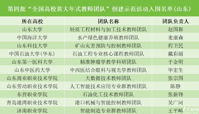 9月5日,教育部公布第四批“全国高校黄大年式教师团队”创建示范活动入围名单,山东共11所高校的11个教师团队上榜股配所,比2023年的第三批在数量上增加了4个。